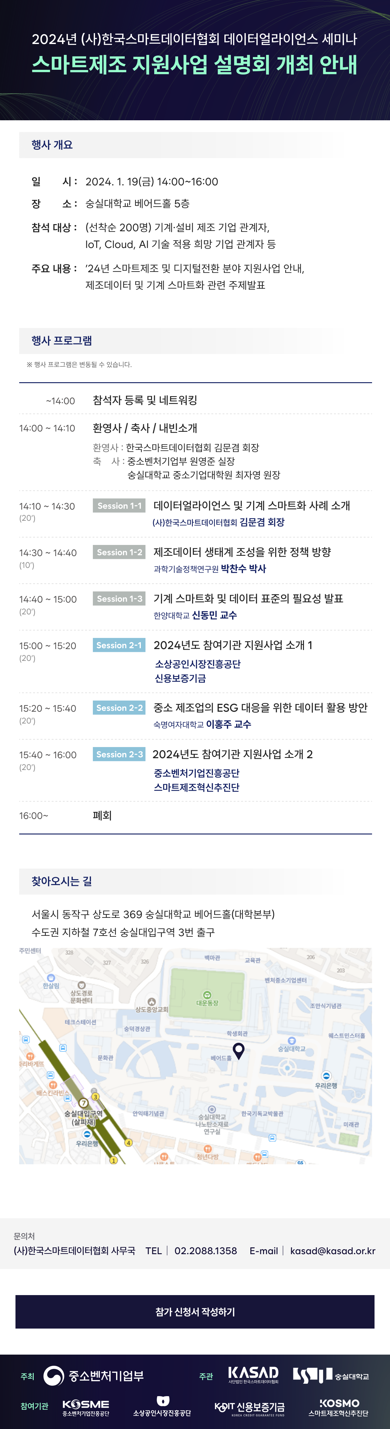 📌 주최/주관 : 중소벤처기업부 / (사)한국스마트데이터협회, 숭실대학교