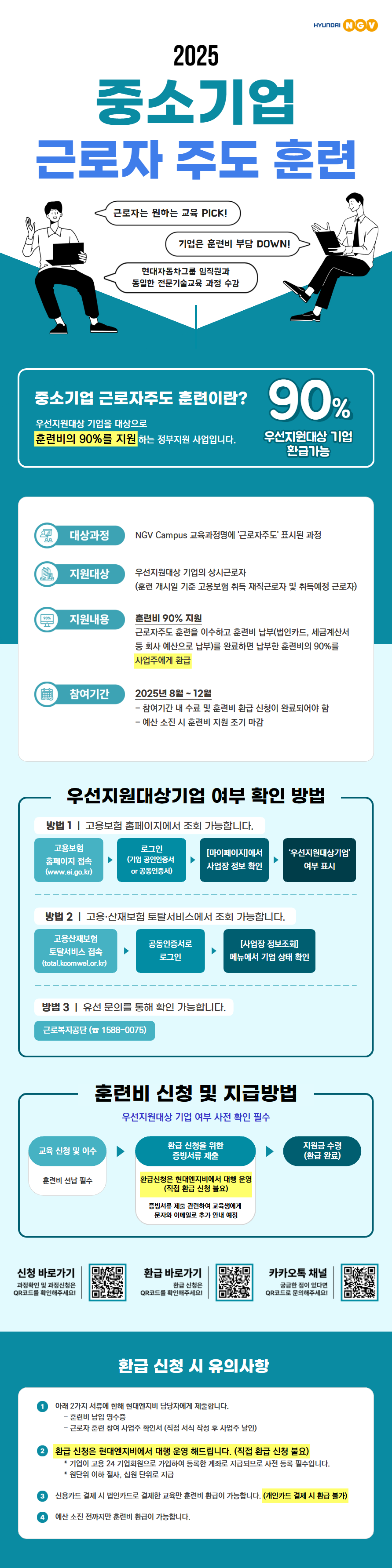 위 활동의 일환으로 우선지원대상 기업을 대상으로 교육비의 90%까지 환급이 가능한 교육과정을 운영하고 있습니다.
