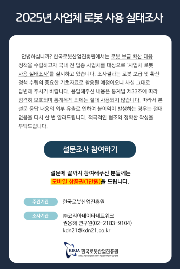 ㅇ조사명: 2025년 사업체 로봇 사용 실태조사