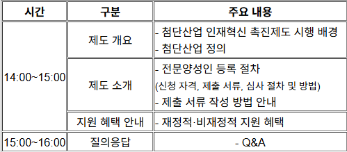 o 주제: 첨단산업 전문양성인 등록 제도 홍보를 위한 설명회